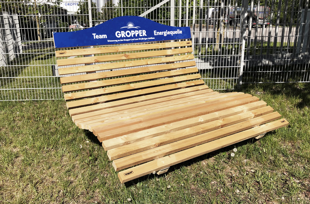 Com os bancos de jardim normais, são necessárias quatro fundações de pontos de betão por banco. Se forem colocadas 4 fundações pontuais de 0,4 m x 0,4 m e uma fundação à prova de gelo (0,8 metros de profundidade)